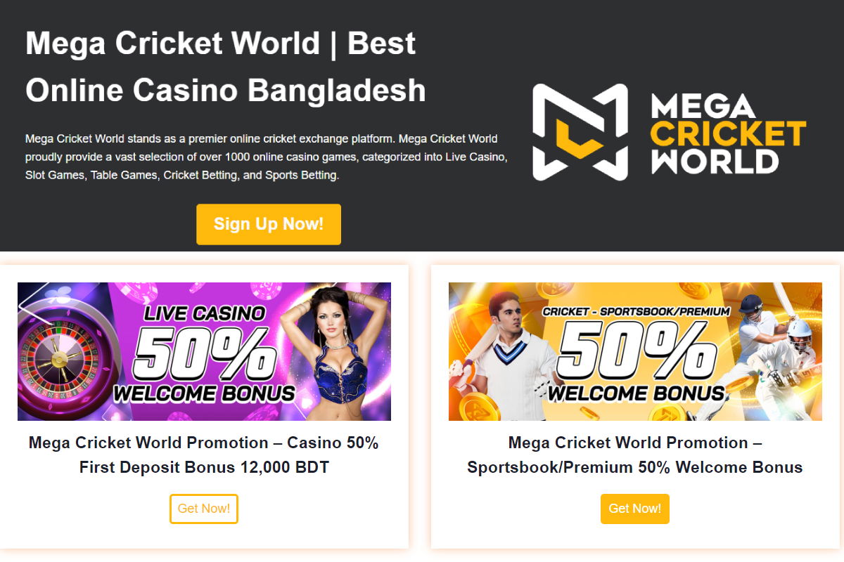Mega Cricket World is one of the best sports betting and online casino Bangladesh. Enjoy Cricket Betting, Live Casino, Slot Games, Tables Games and Sports Betting.